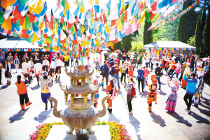 “目瑙纵歌节”有“万人之舞”“东方狂欢节”的美称,是景颇族最盛大隆重的节日,被列入国家级非物质文化遗产名录。春节期间,云南民族村每天都能体验到这一狂欢盛会。跟随着“瑙双”“瑙巴”,姑娘手持彩扇、小伙舞动长刀,舞队排成两条长龙,市民、游客加入其中,踏着鼓点纵情欢跳。