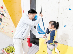 | 李沐朵在教练指导下进行攀岩训练。 |