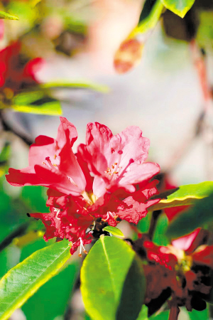 本报讯 记者刘会芳报道 日前,记者在石林县双龙公园看到,60株马缨花(别名马缨杜鹃,俗名美伊花)不同程度绽放,如盏盏野火“烧进”人们的心里。