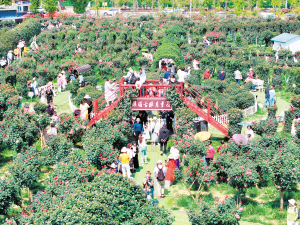 | 4月6日,游客在滇国古桩月季园踏青游玩。通讯员张继洪摄 |