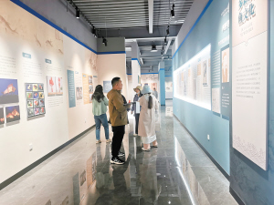 在养殖基地的科普教育基地里,一群研学的大学生时而埋头记录,时而抬头仔细阅读墙上的文字。