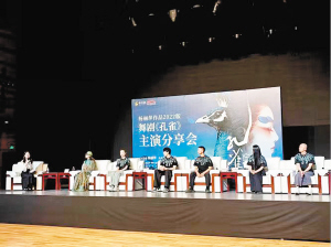 | 杨丽萍等与观众分享《孔雀》幕后故事。云南省大剧院供图 |