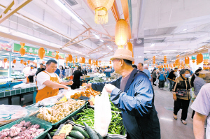 步入位于呈贡区龙城街道东大河边的金龙农贸市场,环境整洁敞亮、摊位分门别类、蔬果摆放整齐;LED电子显示屏滚动播放菜价、上下楼可乘坐电梯……这个既有“高颜值”又有“智慧范”的菜市,日均人流量超万人次。