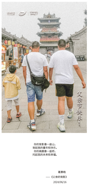| 你的背影像一座山, 背起我的童年和快乐。 你的肩膀像一座桥, 托起我的未来和幸福。 葛景皓 ——《父亲的背影》 2024/06/16 |