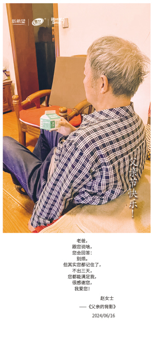 | 老爸, 跟您说啥, 您会回答: 别烦。 但其实您都记住了, 不出三天, 您都能满足我, 很感谢您, 我爱您! 赵女士 ——《父亲的背影》 2024/06/16 |