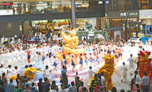 图为健身操、舞龙舞狮、民族啦啦操嗨乐全场。