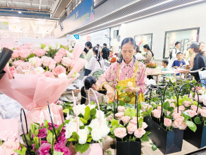 本报讯 记者张怡摄影报道 平时每把25元的花束价格涨至每把45元、平时100元5把的花束价格调整至100元3把……七夕将至,以玫瑰为主的鲜切花成交量、价格逐日上涨。记者日前走访了解到,和往年相比,今年鲜切花供货量有所减少,市场供不应求。
