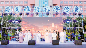 启动仪式现场发布“博文雅行 礼学修身”校园文化活动品牌宣传片,退休教师与书法协会的同学进行书法创作表演。学校56个社团以青春游园会的形式开展招新活动,通过“书简传礼”等别出心裁的形式弘扬优秀传统文化,传播校园文明礼仪。当天还举行校园文明礼仪大赛,28名来自各学院的学生代表参赛,最终10名选手脱颖而出成为校园礼仪大使。