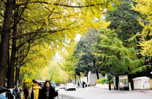 | 文林街银杏披金。 |