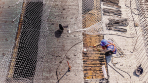 | 12月2日,中铁二十局工人在位于云南省昆明市宜良县的三清高速公路建设现场作业(无人机照片)。新华社 |