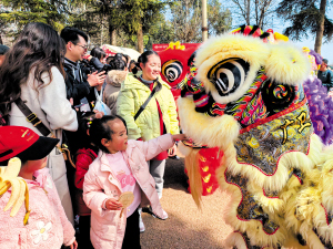 | 观看舞狮表演。 李维梅供图 |