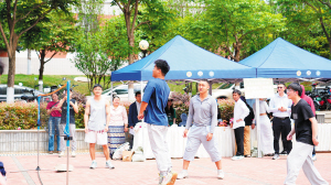 | 大家一起体验藤球运动。 记者杨羽航摄 |