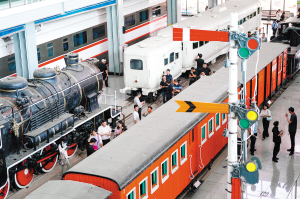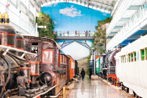 | 云南铁路博物馆内陈列着不同时期的列车。 |