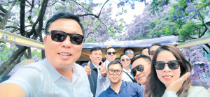 | 越南旅行商在教场中路观赏蓝花楹。 供图 |