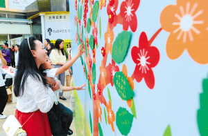 图为参加活动的人员将诚信寄语粘贴到诚信树上。 记者黄晓松摄