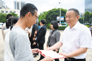 | 图为社会监督员获得聘书。 记者赵伟摄 |
