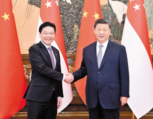 习近平强调,中新要牢牢把握两国友好大方向,始终从战略高度和长远角度看待和发展中新关系,确保航向不偏、动力不减。要筑牢中新友好政治基础,支持彼此核心利益和重大关切,以更高水平政治互信服务两国关系发展。中方欢迎新方继续深度融入中国发展,双方要深入推进共建“一带一路”合作,打造数字经济、绿色发展、人工智能等领域标志性成果,推动重大项目提质升级,续写高质量合作新篇章。要鼓励两国人民常来常往,深化人文交流合作,让中新友好更加深入人心。中方始终认为,和平、发展、合作、共赢的时代潮流不可阻挡,世界不能重拾霸权主义,不能被拖回丛林法则。中方愿同新方一道,站在历史正确一边、站在公平正义一边,共同倡导平等有序的世界多极化、普惠包容的经济全球化,推动世界走向和平、安全、繁荣、进步的光明前景。