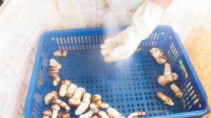 | 旺季时,1个洗菌工1天要清洗上百斤野生菌。 |