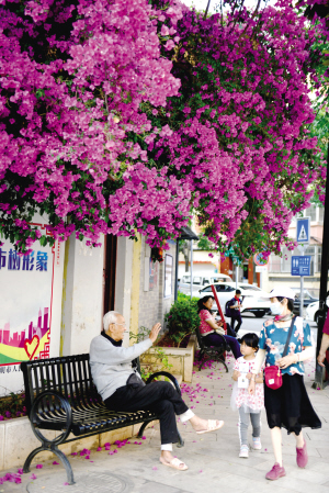 | 三角梅为黄公东街网红打卡点添彩。 |