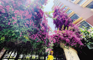 地台寺石咀米轨旁,三角梅装点着百年站台,形成浪漫的米轨花径。新联巷澳霖公寓外,一株三角梅攀爬至十层楼高,变为40米的垂直花瀑。