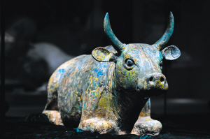 | 2024年11月26日在宁夏博物馆拍摄的鎏金铜牛。新华社 |