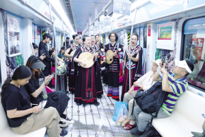 随后,所有演职人员、工作人员来到“禄劝号”列车上与市民和游客互动,开展车内快闪活动,现场弹唱、服饰走秀,把歌声与快乐带给市民和游客。