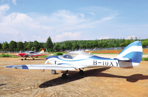 | 停在跑道上的轻型飞机。 石林县委宣传部供图 |