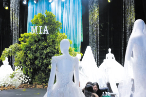 | 婚博会展示的婚纱礼服为新人提供了多样选择。 |