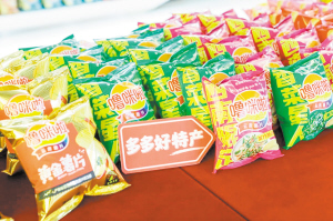 | “噜咪啦”各式口味土豆片在拼多多热销。本版图片付兴华摄 |