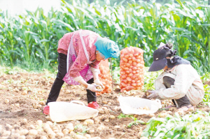 | 村民正在地里采挖新鲜土豆。 |