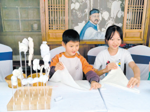 | 小朋友体验非遗。 本组图片由云南省非物质文化遗产保护中心供图 |