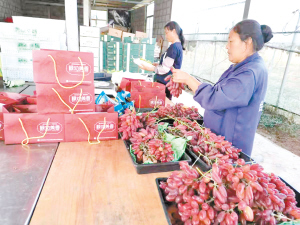 | 工作人员对葡萄分装打包。 茂山镇供图 |