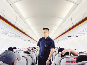 每一次航班保障,田渭阳都以“零容忍”的态度严防细查,以“万无一失”的信念严阵以待。他严格落实常规执勤流程:航前仔细检查器械装备,核查航班信息与旅客构成;登机后全面巡视应急设备、安全出口及行李架;飞行途中高频次巡查客舱,精准掌控动态;落地后认真复盘执勤细节,与同组人员交流风险防控经验。他常说:“飞行安全没有‘差不多’,只有‘零差错’。把每次飞行都当作首航对待,安全才能成为必然。”