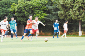 | 参赛选手在绿茵场上激烈角逐。 大观街道供图 |