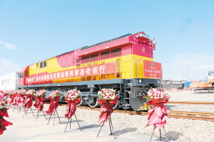 | “郑和号”海公铁国际多式联运班列进入常态化运行阶段。 |