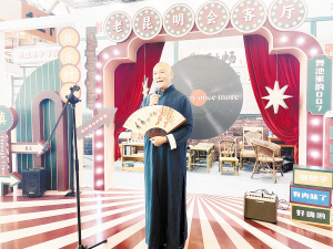 老昆明会客厅舞台上,昆明历史文化学者、老昆明杂书馆名誉馆长詹霖正在用昆明方言演绎“市声有味——昆明老行当的吆喝叫卖”,吸引嘉宾与观众驻足观看。作为昆滇老字号展的六大板块之一,老昆明会客厅在展会期间每天都推出演出,包含说书、怀旧歌舞表演等,在提升活动互动参与感的同时,让更多观众了解昆明故事,赓续昆明文脉。老昆明杂书馆馆长戈捍则带来精彩的怀旧歌曲演唱,引起无数人的共鸣喝彩。