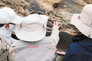 | 文物考古工作者对“尕日塘秦刻石”进行现场考察。 |