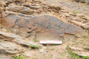 | 文物考古工作者考察时拍摄的该刻石遗迹照片。 |