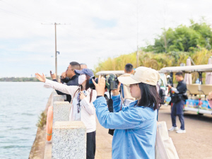 在滇池绿道,大家沿着绿道观赏卧龙古渔村、水之桥、草之桥、薰衣草庄园的独特景观,纷纷拍照打卡。绿道旁摇曳的芦苇与滇池碧波、蓝天白云相互映衬,铺展出一幅青绿为底、活力涌动的风景长卷,令人心旷神怡。第一次来滇池绿道的昭通市融媒体中心记者聂孝美为眼前“人在画中游,画在景中走”的美好点赞,“每一个场景都让人眼前一亮,这种串着山海、连着湿地、挨着村庄的感觉让人耳目一新,真切感受到了昆明生态环境的变化。”文山州融媒体中心新媒体编辑部主任徐昌建表示,绿道兼具生态价值与景观价值,把昆明滇池保护治理成果尽收眼底,既能看到城市风光,也能观赏湿地景观,生态保护与文旅融合发展,给人留下深刻印象。
