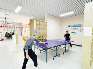 市民在广福小区社区居家养老服务中心打兵乒球。 |