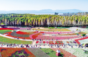 | 2025年初,游人在昆明捞渔河湿地公园内赏郁金香(无人机照片)。 新华社 |