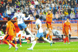 | 为云南玉昆取得制胜进球的恩里克在比赛中。周罗希摄 |
