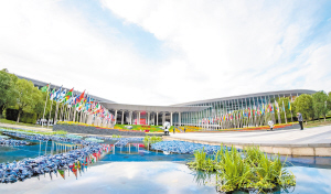 | 装饰一新的国家会展中心(上海)南广场。 新华社 |