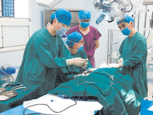 | 医生为患儿手术。 |