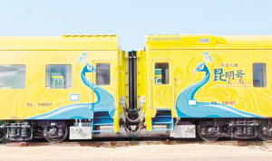 | 昆明号的涂装以亮黄色为基础底色,车身的核心元素为孔雀。 昆明文旅集团供图 |