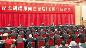 新华社电 中共中央11月20日上午在人民大会堂举行座谈会,纪念胡耀邦同志诞辰110周年。中共中央总书记、国家主席、中央军委主席习近平发表重要讲话强调,要认真学习胡耀邦同志的崇高精神风范和优良作风,不忘初心、牢记使命,坚定历史自信,增强历史主动,以一往无前的奋斗姿态扎实推进各项事业。