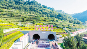 | 云南安排资金推动渝昆高铁云南段建设,图为空中俯瞰渝昆高铁炳辉隧道。 新华社 |