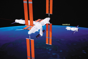 | 神舟二十二号飞船与空间站组合体交会对接过程的模拟画面。 本组图片均据新华社 |
