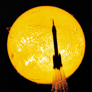 | 使用日珥镜拍摄的火箭凌日瞬间。 |
