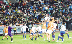 | 11月29日晚,滇超联赛首场比赛在玉溪高原体育运动中心举行,玉溪队主场对阵怒江队。 记者赵伟摄 |